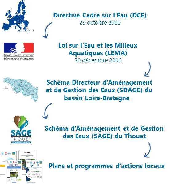 Le SAGE fixe des objectifs généraux d’utilisation, de mise en valeur, de protection quantitative et qualitative de la ressource en eau et des milieux aquatiques pour une gestion concertée et collective de l’eau, afin de satisfaire à l’objectif de bon état des masses d’eau de la Directive Cadre Européenne sur l’eau (DCE). Il s’inscrit également comme la déclinaison locale du Schéma Directeur d’Aménagement et de Gestion des Eaux (SDAGE) Loire-Bretagne.
